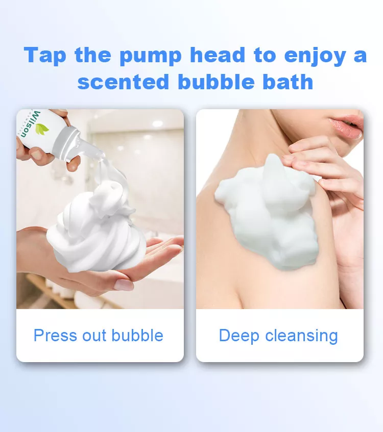يتم عصر رغوة الاستحمام المرطبة طويلة الأمد من ويلسون في البداية من حالة الجل، ولكن في راحة اليد، يمكن أن ينتج فرك بلطف رغوة حليب كثيفة جدًا ويمكن أيضًا أن تكون رغوة في حالة عدم وجود ماء، أوه ~ نسيج مزدوج وبشرة نظيفة تدق بشكل مريح.