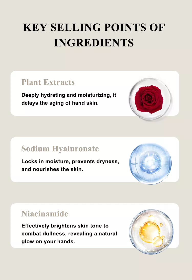 بعد استخدام كريم اليد سريع الامتصاص الفوري، يصبح الجلد أكثر حساسية، وتقل الخطوط الدقيقة، ويزداد محتوى الماء في الجلد. كريم اليد مناسب لمختلف المناسبات في الحياة اليومية، خاصة لأولئك الذين يغسلون أيديهم بشكل متكرر، أو يتلامسون مع عوامل التنظيف، أو يتعرضون لبيئات جافة وباردة. سواء كان ذلك للرعاية المنزلية أو إعدادات المكتب أو الأنشطة الخارجية، فإن تطبيق كريم اليد في الوقت المناسب يحمي يديك بشكل فعال ويحافظ على بشرة صحية وشبابية.